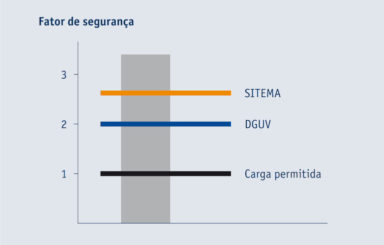 Os padrões internos da SITEMA exigem um fator de segurança ainda maior. Assim, por exemplo, uma proteção antiqueda KR 40 ou KRP 40 da SITEMA com SiForce Technology tem uma força de retenção real superior a 10 toneladas com uma carga nominal de 3,3 toneladas!